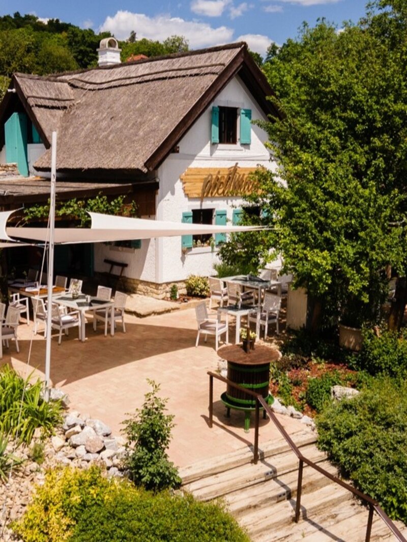 Picitmás ("A Trifle Different") Restaurant and Manufactory is located in Balatonszőlős, in the heart of the Balaton Uplands, with a picturesque view of the Tihany Peninsula. The restaurant is a reimagined version of a former wine bar, where Hungarian culinary classics are presented in a modern style. The kitchen's philosophy is based on seasonal, local ingredients, and the menu includes trout, wild boar, pike, and homemade pasta and pastries. The manufactory also sells handmade products, jams, syrups, and decorations are also available, with the help of local craftsmen.