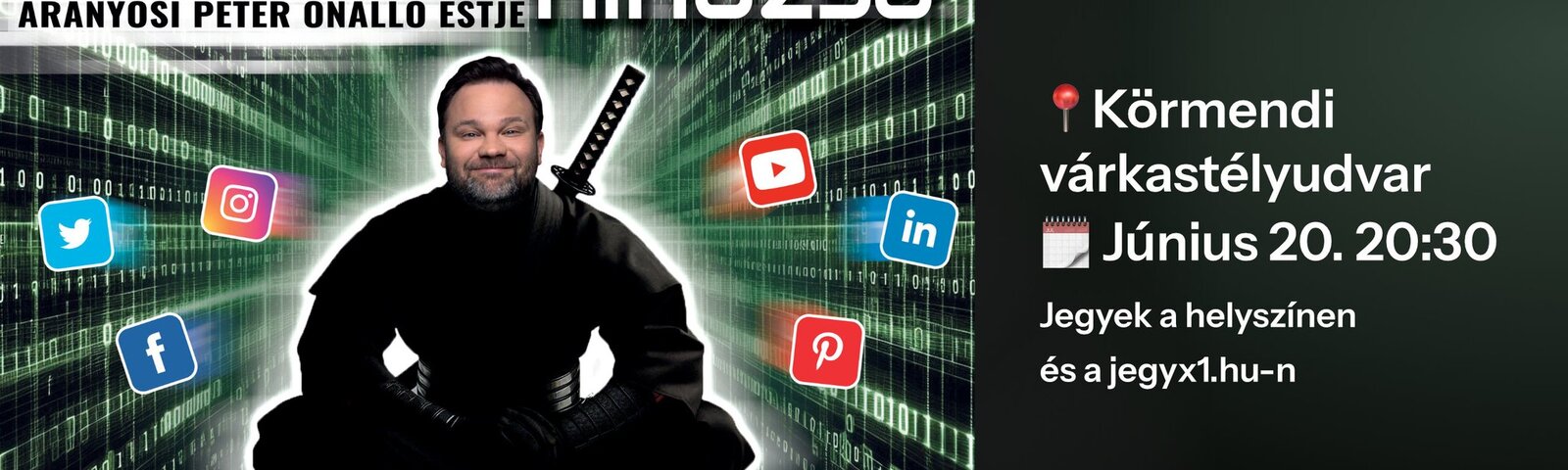 Aranyosi Péter legújabb, „A digitális nindzsa” című önálló estje Körmendre is ellátogat, ahol a humorista a tőle megszokott fergeteges stílusban boncolgatja a modern technológia és az 50 feletti generáció „összecsapását”. Az előadás rövid leírásaAz est központi témája a felgyorsult digitális világ, amelyben jelszavak, PIN-kódok, QR-kódok és mesterséges intelligencia között kellene eligazodnunk. Aranyosi saját élményein keresztül meséli el, milyen kihívásokkal küzd egy „analóg ember” a robotpénztárak és az értelmezhetetlen közösségi média felületek világában. Az előadás eredetileg a provokatívabb „Digitalizáció, avagy a tömeggyilkosok és én” címet kapta volna, utalva a technológia okozta mindennapi bosszúságokra. Információk a körmendi eseményről