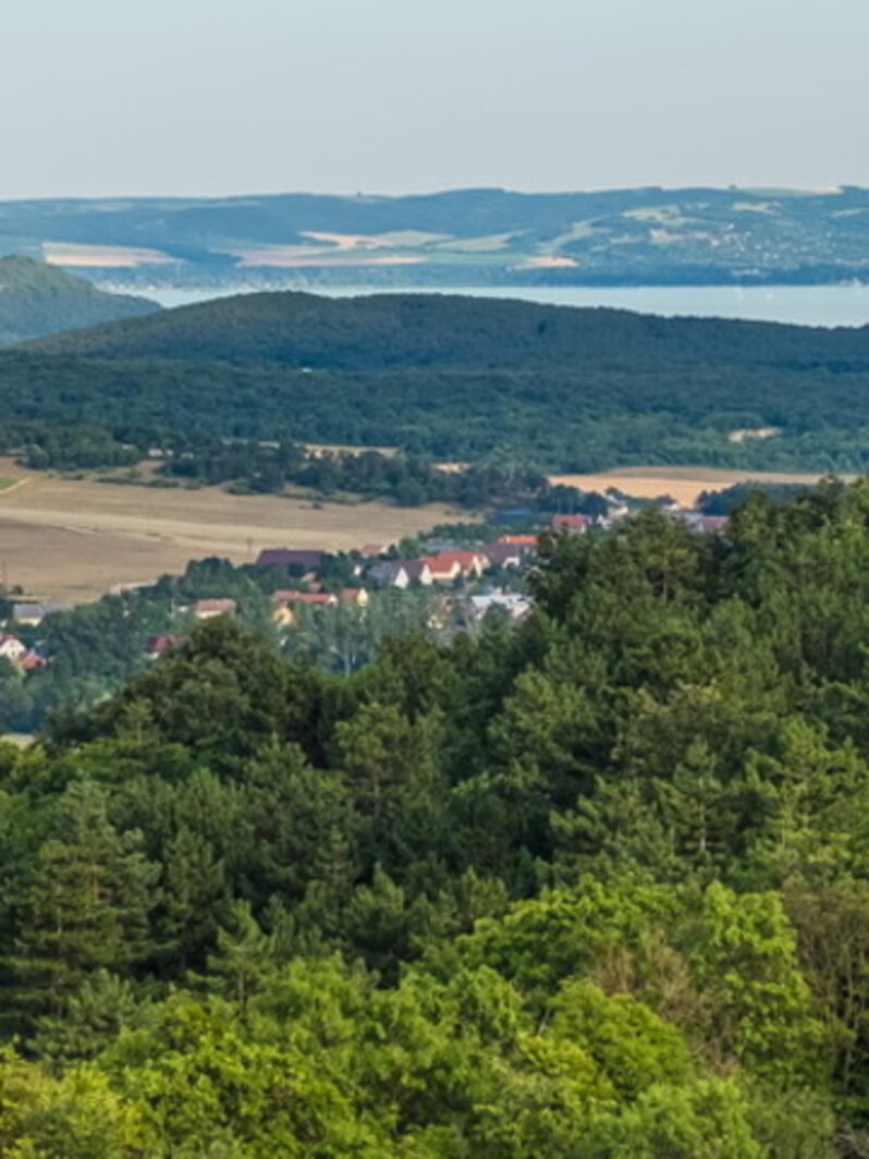 Újra begurulunk az erdőbe, és a Kis-Gella, majd a Nagy-Gella csúcsa mellett haladunk el, átszelünk egy mezőt, ahonnan már a Dél-Bakony csúcsa, a mindig szeles Kab-hegy is látszik. A barnagi elágazásnál éppen csak érintjük a műutat és ismét jól fog jönni az elektromos rásegítés, mert a Zádor-várig felfelé kapaszkodunk. A vár mellől megcsodáljuk a Pécselyi-medence egyedülálló látképét és elfogyasztjuk „csúcs csokinkat".