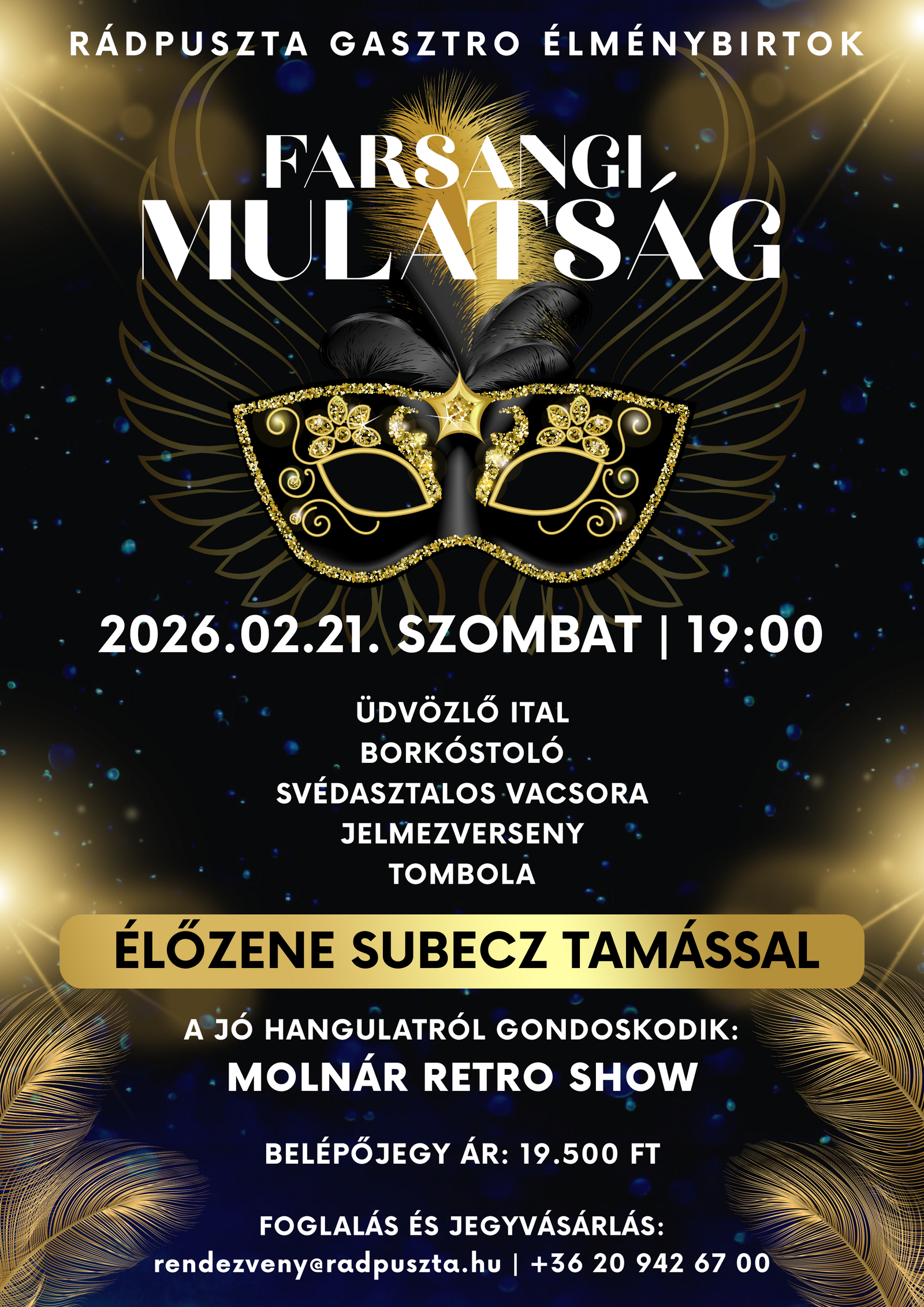 Merülj el a farsang varázsában, táncolj hajnalig, és élvezd egy különleges éjszaka minden pillanatát Rádpusztán!