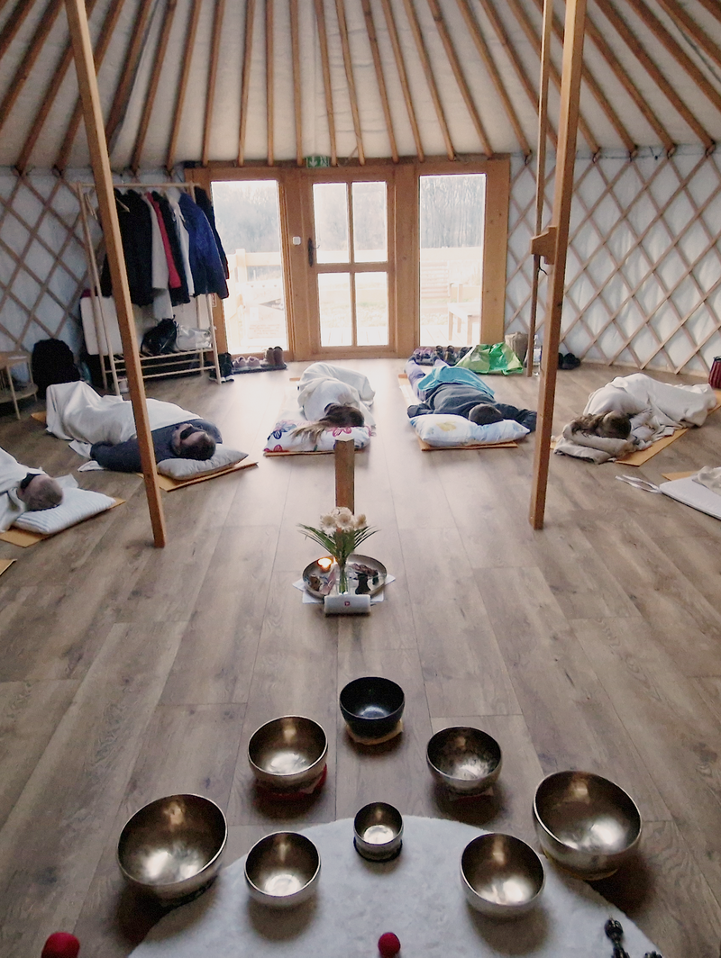60 perc pihenés, relaxáció, feltöltődés, újrahangolódás csodás meditatív hangszerek hangjai és rezgései segítségével. A hangfürdő egy teljes testet ellazító relaxációs gyakorlattal kezdődik, és gyógyteázással zárul.
