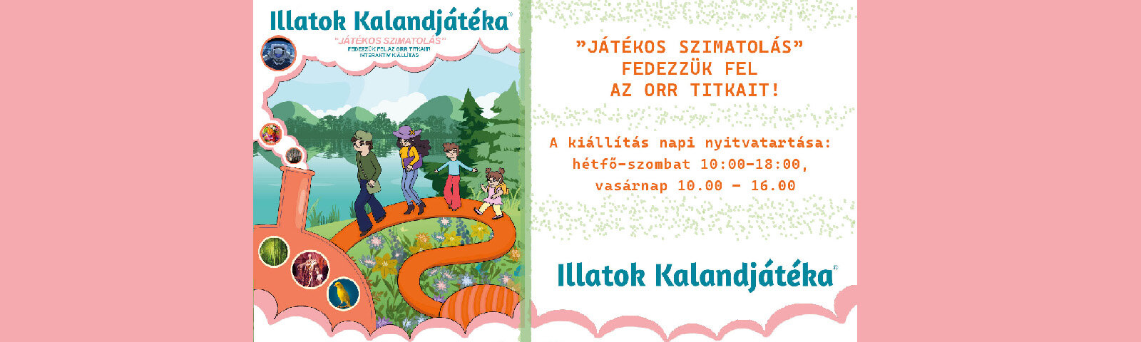 Tömény, szédítő, balzsamos, szúrós, orrfacsaró? Az illatok bámulatosan sokfélék, az emberi szaglásnak pedig sokkal nagyobb szerepe van életünkben, mint azt képzelnénk. Az ILLATOK KALANDJÁTÉKA interaktív kiállításra ellátogatók egy szórakoztató, illatokban gazdag játék keretében tehetik próbára orrukat és érzésüket!