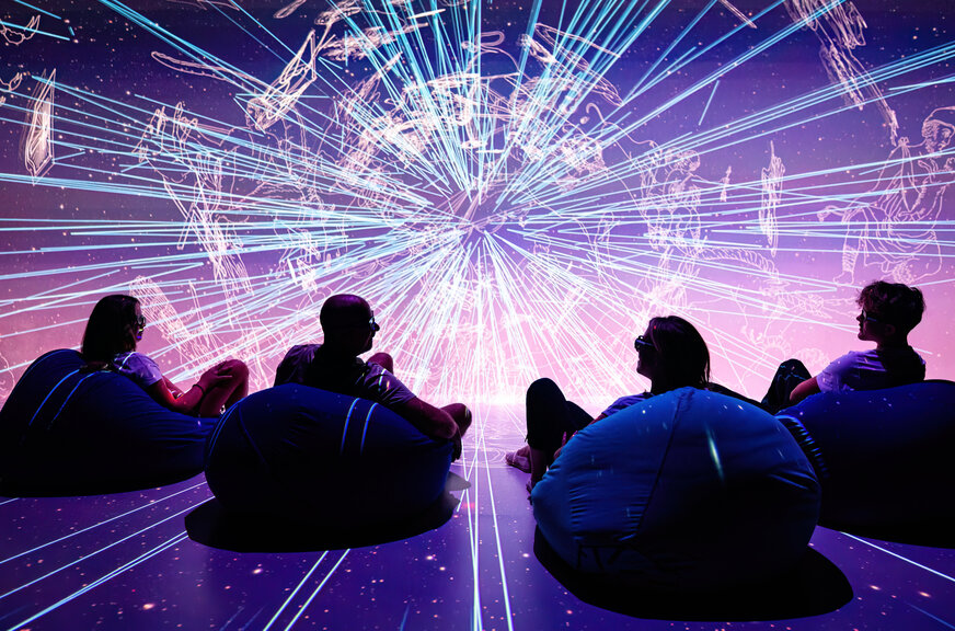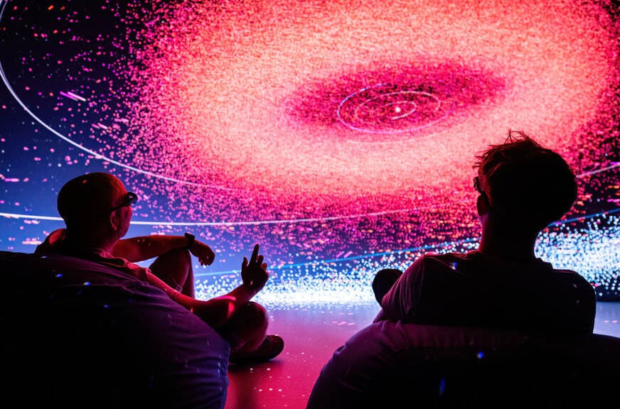 A Stúdió 180°-os, vezetett vetítésén egy olyan 3D-s térbe léphetsz be, ahol a csillagok között repülhetsz és bolygókat fedezhetsz fel– mindezt valós idejű, tudományos adatokra épülő, interaktív vizualizációkkal kiegészítve.