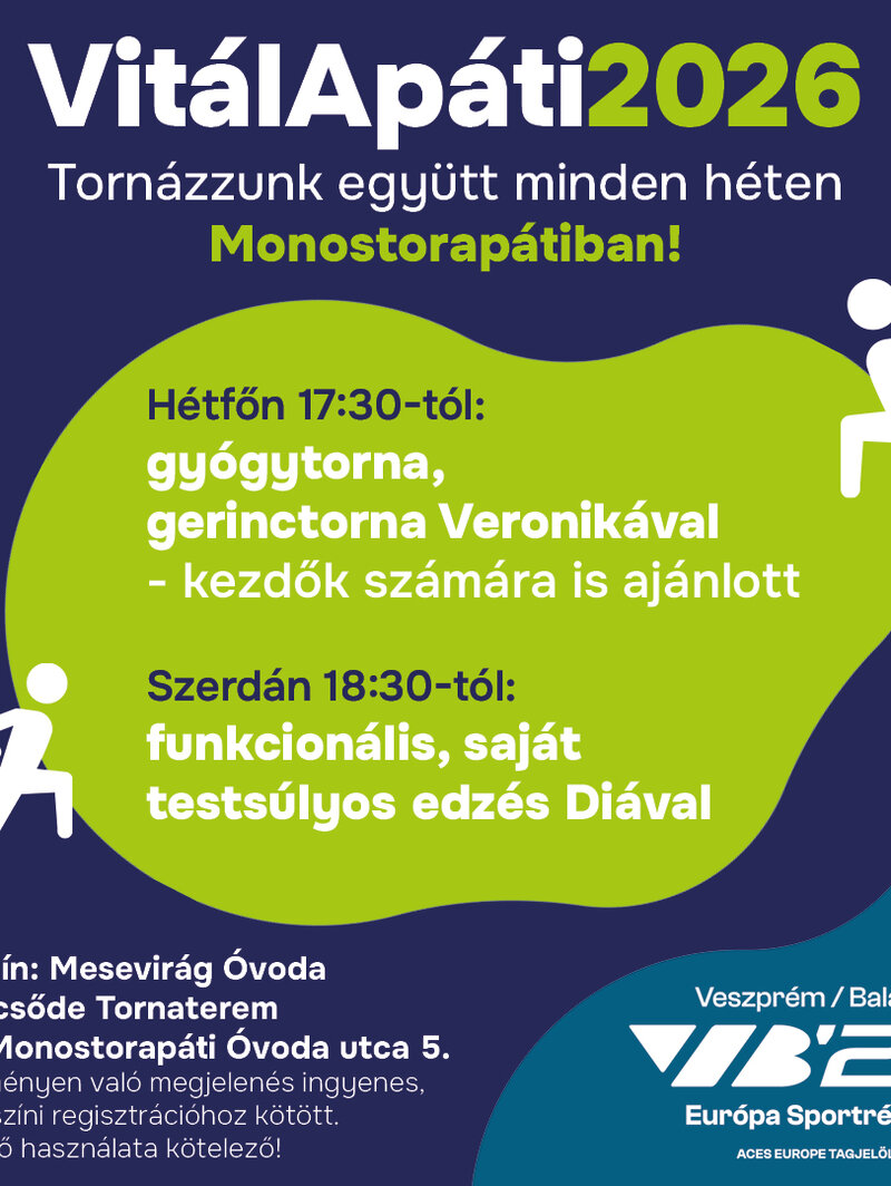 Az edzés minden héten szerdán 18:30-kor kezdődik a monostorapáti Mesevirág Óvoda és Bölcsőde tornatermében.