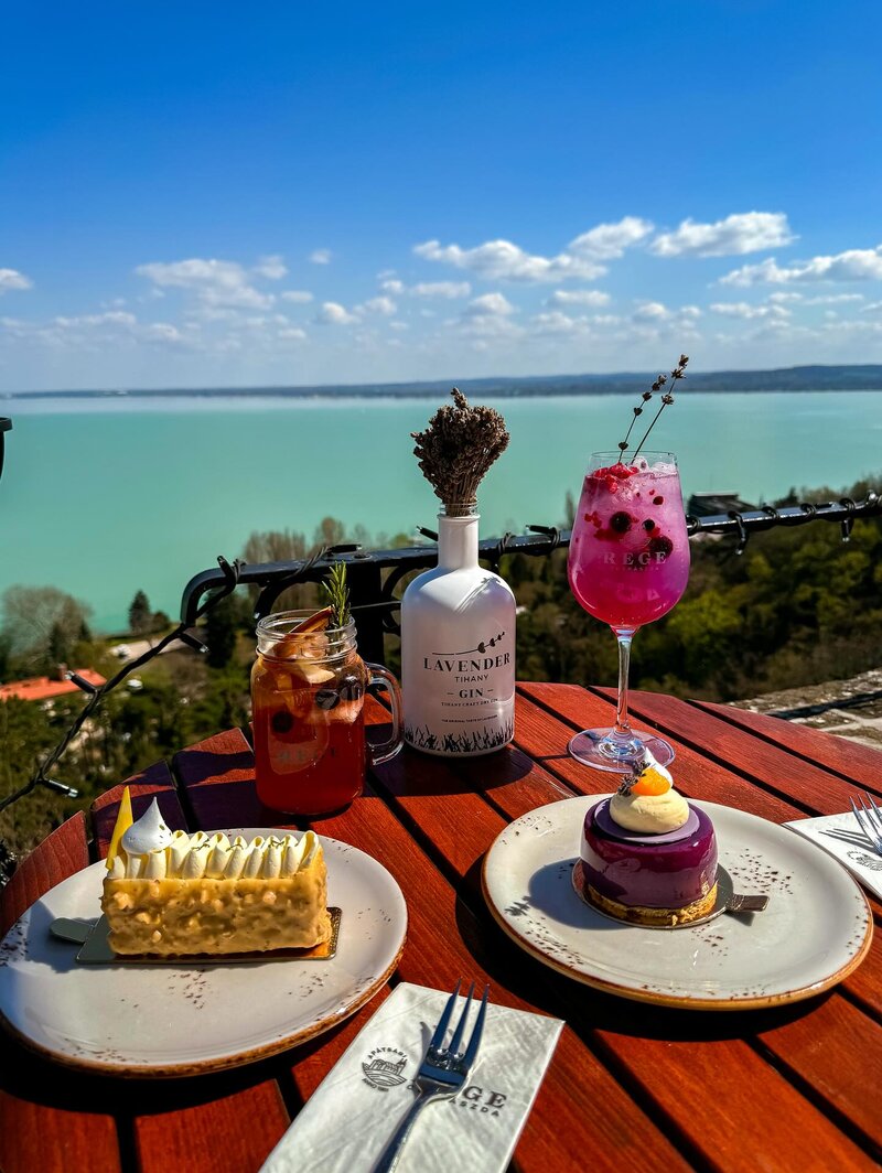 A kínálatban megtalálhatók levendulás specialitások, ikonikus sütemények, mentes desszertek, villás reggelik, ropogós pizzák, változatos fogások és saját pörkölésű Apátsági kávé. A látványműhelyben készülő édességek mellett gasztro ajándékok is vásárolhatók. A cukrászda terasza Balatonra nyíló kilátásával felejthetetlen élményt nyújt a betérőknek.