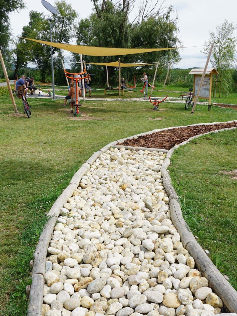A Kneipp-módszer szerint kialakított ösvény nemcsak egészségmegőrző, hanem szórakoztató is: egyensúlyozó gerendák, farönkök és fa akadályok teszik próbára a mozgáskoordinációt. A sétány mellett szabadtéri fitneszpark, pihenőpadok, asztalok és információs táblák is helyet kaptak, így a helyszín ideális családoknak, kirándulóknak és sportolóknak egyaránt.