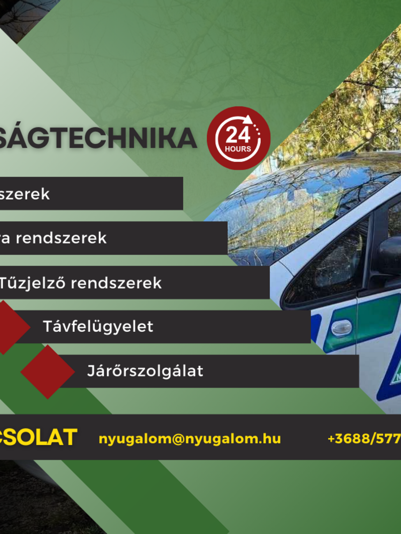 A Nyugalom komplex biztonságtechnikai megoldásokat kínál, amelyek között riasztórendszerek, távfelügyelet és objektumvédelem szerepel. A szolgáltatások célja a magán- és üzleti ingatlanok védelme, modern technológiával és gyors reagálással. A kínálat kiterjed rendezvénybiztosításra és személyvédelemre is, így teljes körű biztonsági hátteret nyújt.
