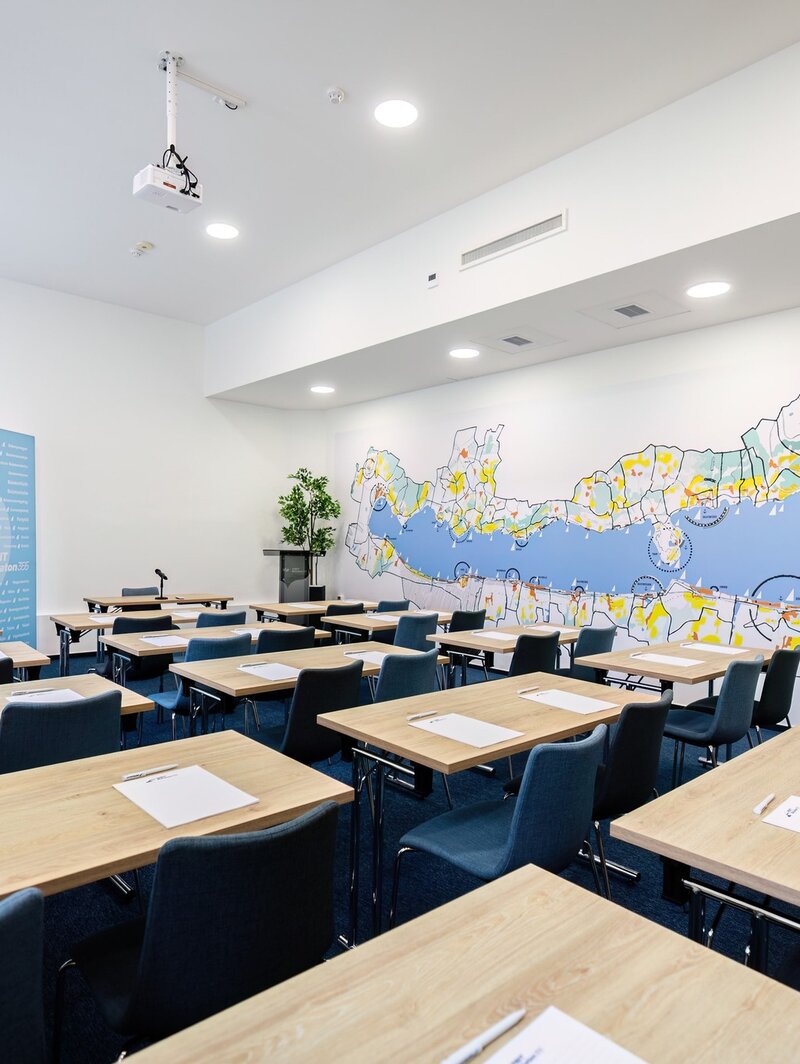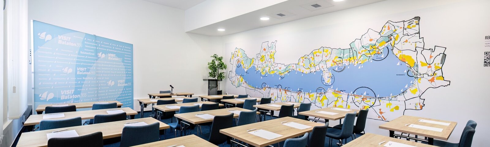 A VisitBalaton365 keszthelyi központja a balatoni turizmus szakmai találkozóhelye. A felújított, műemlék jellegű épületben kialakított iroda információs és képzési bázisként működik, ahol tréningek, workshopok és szakmai egyeztetések zajlanak. A modern, barátságos enteriőr a négy évszakos Balaton hangulatát idézi, különleges eleme az 1957-es Regionális Tervvázlat replikája.
